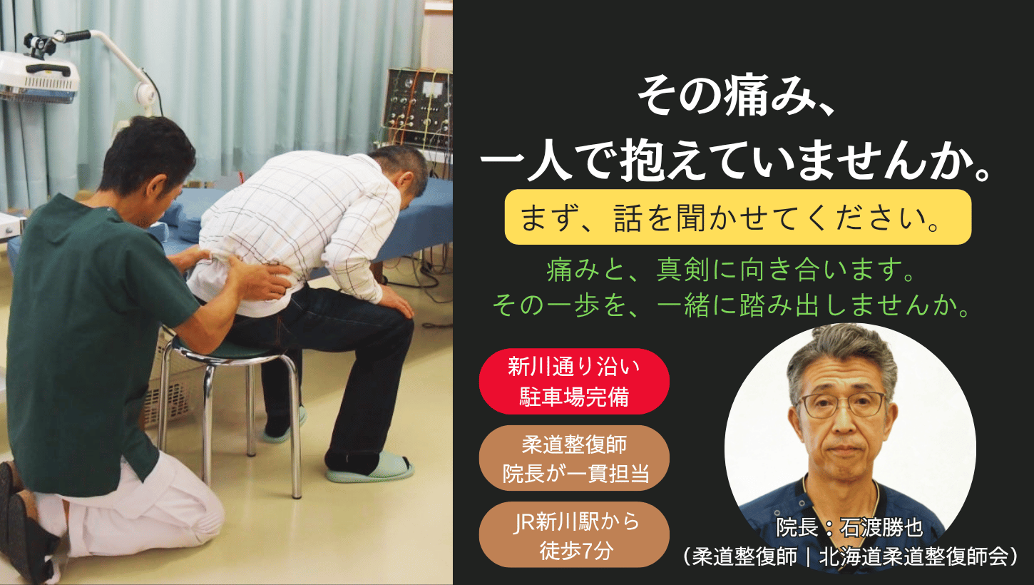 札幌市北区新川|柔道整復師 石渡勝也院長|平成11年開院